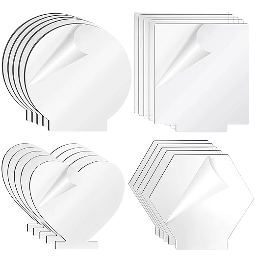 KaaHego 20 PCS Acrylic Sheet Clear Cast for LED Light Base, 2 mm Acrylic Blanks Panel Board 6×5 Inches, Transparent Cast Board with Protective Film for Table Sign DIY Display Project, 4 Shapes