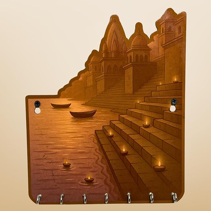 KaaHego Banaras Ghat-Inspired MDF Key Holder – UV Printed Wooden Wall Hanging