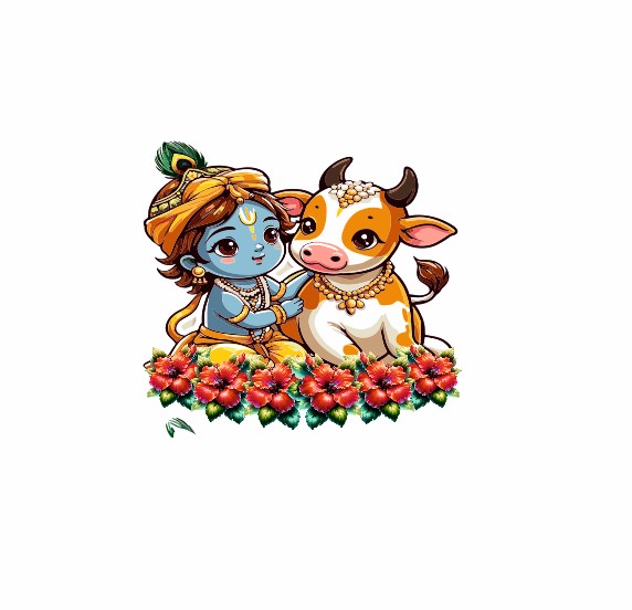 KaaHego Cute Krishna with Cow Wall-Mounted Key Holder, Decorative MDF Pine Wood