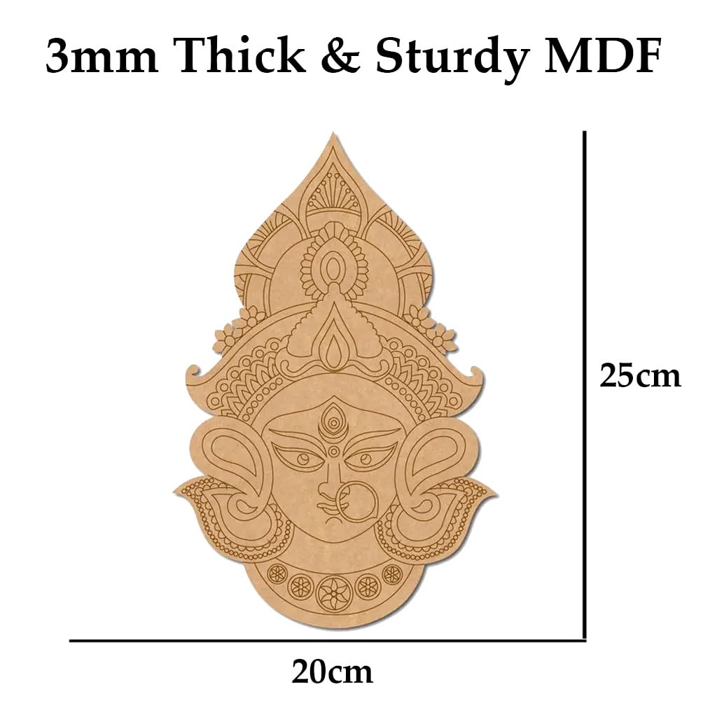 Kaahego MDF Board for Lippan Art – Pre-Marked Maa Durga Ji Design Cutouts for Craft, Painting, DIY Projects – Eco-Friendly MDF Wood, 25×20 cm, Ideal for Creative Gift Ideas