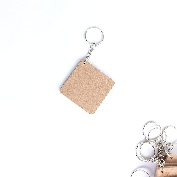 KaaHego MDF Key Chains Wood Sheet Craft Square Shaped Set of 20 – 2 x 2 Inch Plain MDF Bases for Painting, Decoupage, Resin Artwork, DIY Craft, and Home Decoration
