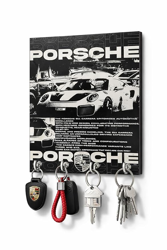 KaaHego Premium Sports Car Theme Wooden Key Holder | Wall Mounted Keychain Organizer with 4 Metal Hooks | Modern Home & Office Decor