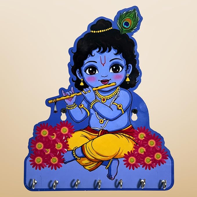 KaaHego Shri Krishna (Makhan Chor) Key Holder – Decorative Wall Art for Home | Little Krishna Key Organizer for Bedroom, Living Room, Guest Room & Dining Area