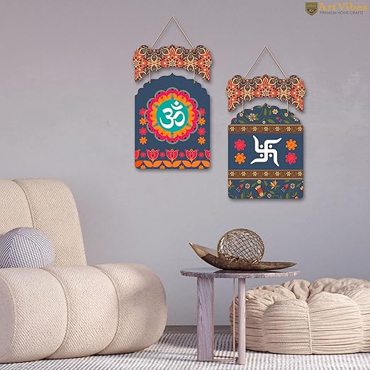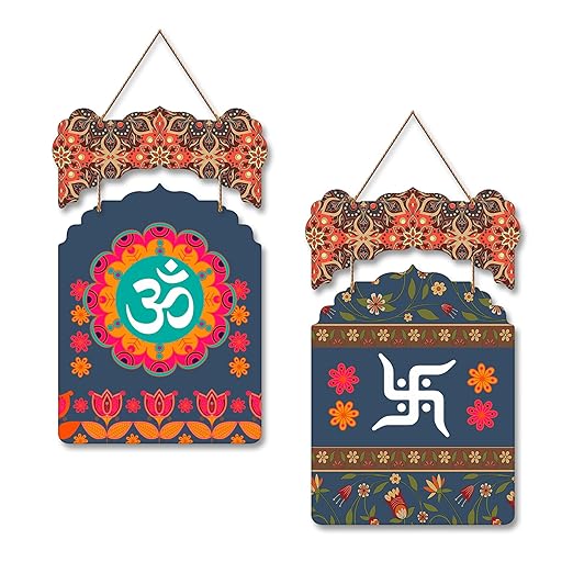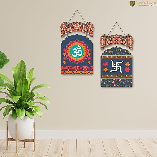 KaaHego Symbols OM and Swastik Wooden Wall Hanger for Home Decoration | Spiritual Decor Item | Wall Sculpture | Signs & Plaques| Stylish Modern Decor Item | Gift Items (WH_9208N), Set of 2