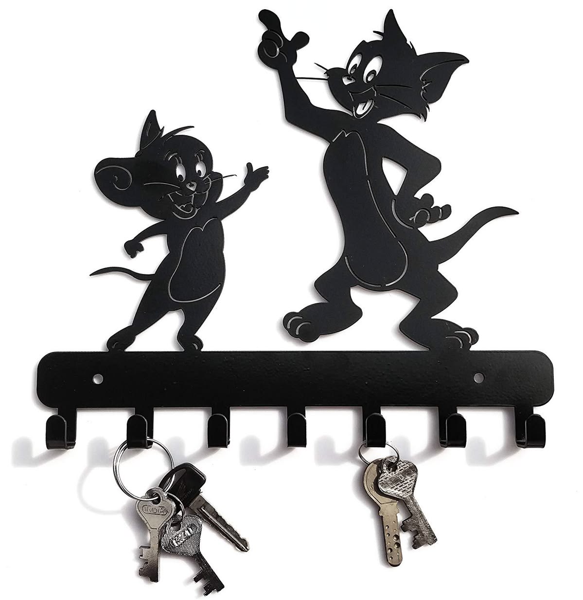 KaaHego Tom And Jerry Shaped Figure Steel Key Holder With 7 Hooks (black) Home Decor