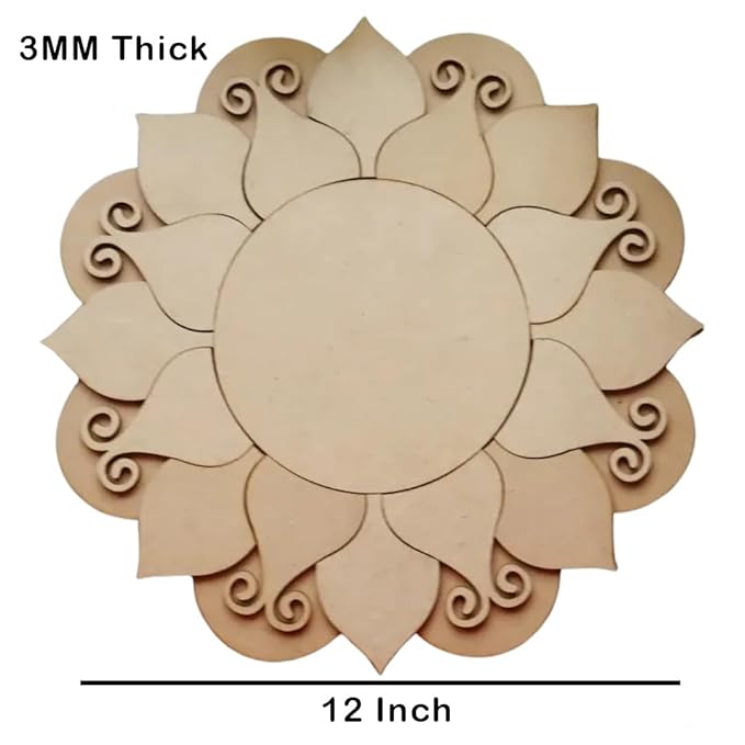 - Bullet Point 1: Enhance your Diwali celebrations with this exquisite wooden rangoli design set. The 12-inch MDF rangoli cutouts are perfect for creating stunning festive decorations at home.